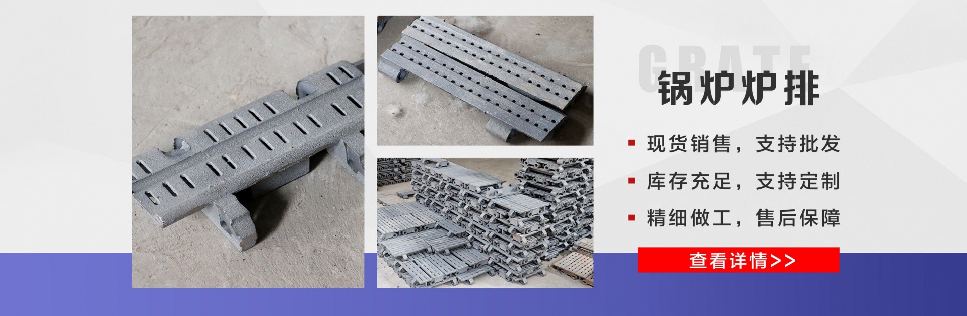 麗新機械配件廠位于“江北水城”之稱的聊城。公司主要銷售:鍋爐爐門,爐篦子,爐排片,鍋爐爐排,省煤器管,鍋爐風帽,鍋爐配件等多種產(chǎn)品,公司堅持以市場為導(dǎo)向、以誠實守信為經(jīng)營理念,竭誠為廣大客戶服務(wù)!  爐排是鍋爐或工業(yè)爐中堆置固體燃料并使之有效燃燒的部件。整個爐排主要包括框架和爐排片兩個部分。爐排片通常用鑄鐵制造,組裝后片與片之間保持必要的通風縫隙,并且往往還在爐排下邊設(shè)置可以調(diào)節(jié)風量的分隔的通風室,以便空氣通過縫隙進入燃料層燃燒。燒盡后的灰渣用人工或機械方法排出。爐排有固定式、移動式、往復(fù)式、振動式和下飼式等類型。  鍋爐爐排操作實現(xiàn)了機械化,減輕了司爐工的勞動強度。快裝出廠,到使用現(xiàn)場后,裝接閥門儀表,鼓、引風機、煙風管道、省煤器、除塵器、出渣機。上煤機及水電路等即可運行,且具有起動生火快等特點。  公司憑借豐富的規(guī)格品種,過硬的質(zhì)量,合理的價格,完善的服務(wù),不斷地受到新老用戶及業(yè)內(nèi)人士的肯定和信任,我們本著及用戶之所及,想用戶之所想的服務(wù)宗旨不斷地拼搏,進取,在此對多年來支持我們的各行各業(yè)的新老朋友表示由衷的感謝!  我公司的理念:“誠信、合作、互利、雙贏”!以最大的努力滿足客戶的需求。...